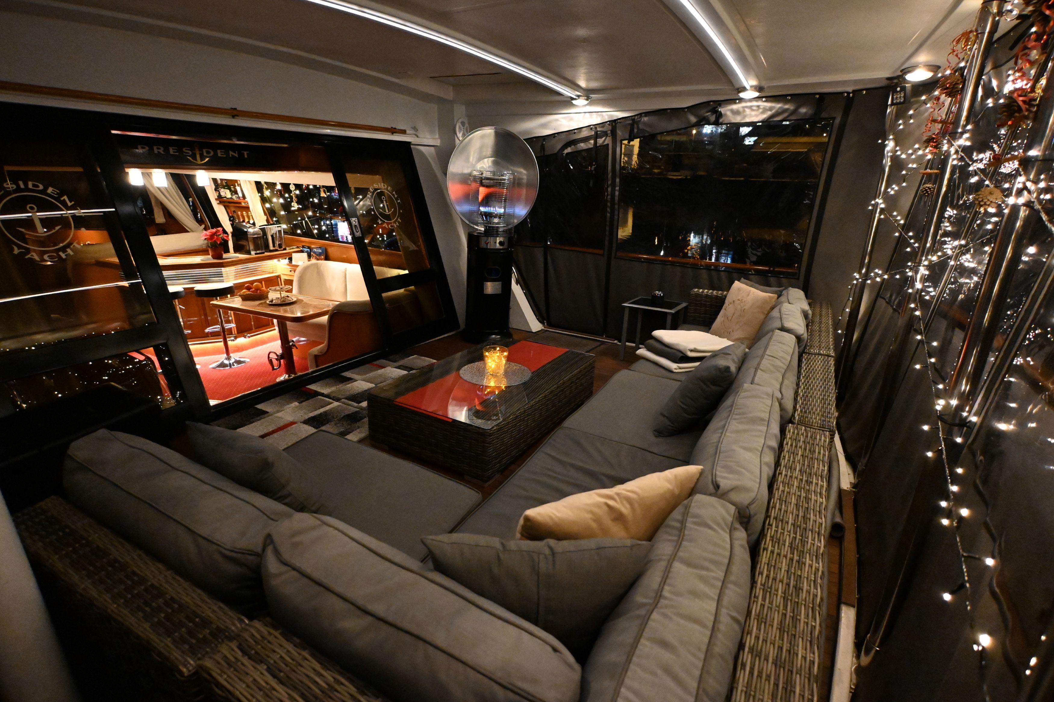 Votre yacht privé dispose d’un bar entièrement équipé, d’un salon intérieur confortable et de trois ponts extérieurs parfaits pour se détendre et faire la fête.